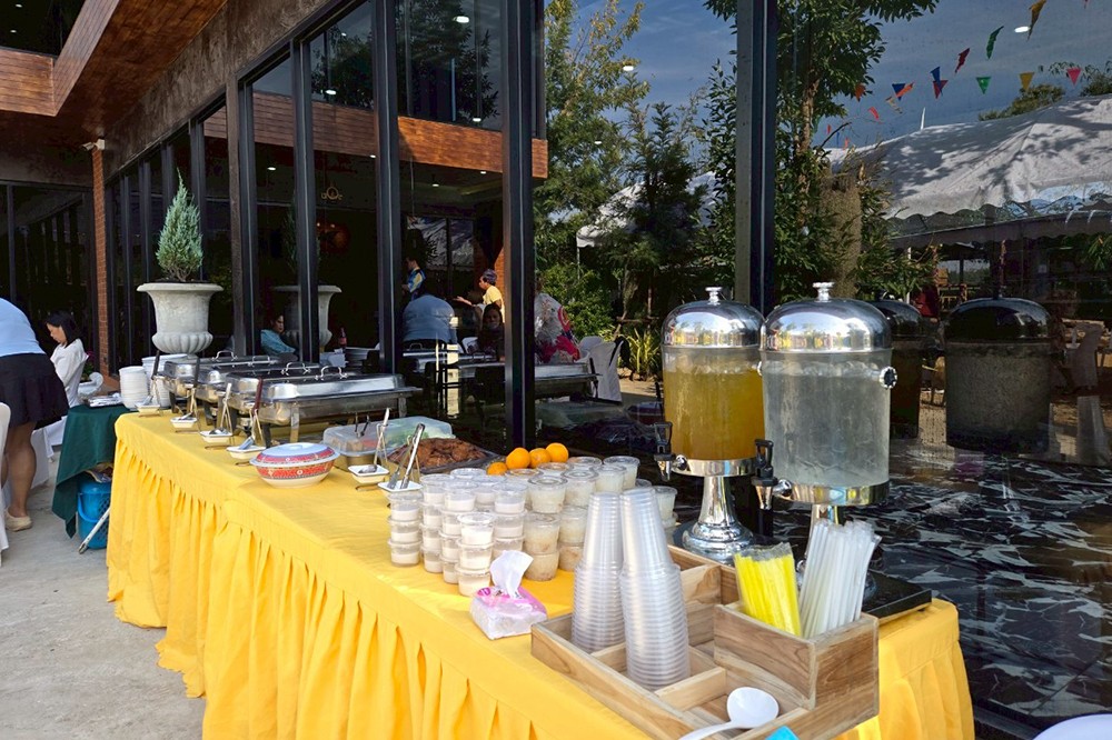 - ตกแต่งสถานที่ ด้วยดอกไม้ ผ้าคลุม โต๊ะ เก้าอี้ พรม และธีมที่สอดคล้องกับแบรนด์หรือบรรยากาศของบริษัท